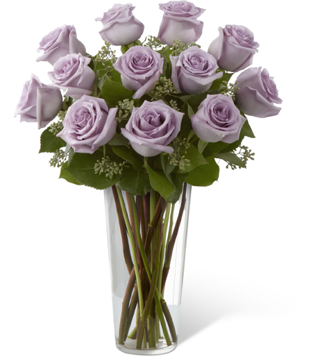 This magnificent anniversary bouquet is meticulously chosen and crafted to convey your love and concern. The Lavender Rose Bouquet adds a sophisticated touch of pale lavender to the traditional dozen roses. Interwoven by a local florist with seeded eucalyptus in a clear glass vase, this bouquet represents enchantment and love at first sight with perfection. Our local florists in the United States can reserve your Lavender Rose Bouquet in advance or create a fresh arrangement for same-day delivery.
